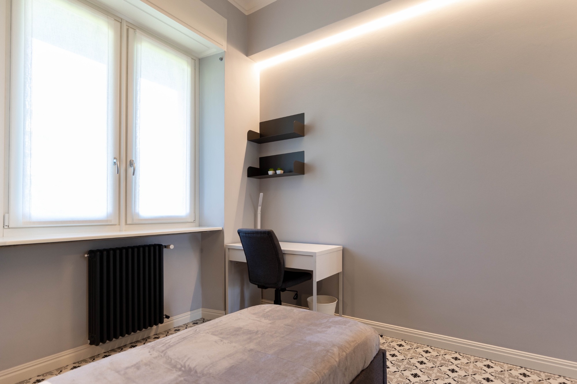 Appartemento situato nel cuore della Crocetta composto da due camere con bagno privato, cucina in condivisone con balcone.